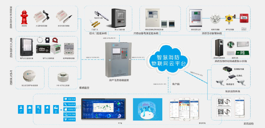 為了更好地實(shí)現(xiàn)一站式綜合解決方案,智慧消防系統(tǒng)管理平臺(tái)借助多項(xiàng)子系統(tǒng)共同組合而成,它能夠把消防過(guò)程中所需要的消防信息全部連接起來(lái),實(shí)現(xiàn)更智能高效的消防服務(wù)。比如:火災(zāi)自動(dòng)報(bào)警系統(tǒng),它能夠?qū)崟r(shí)獲取探測(cè)器報(bào)警數(shù)據(jù)、設(shè)備故障、設(shè)備動(dòng)作狀態(tài)等數(shù)據(jù),便于消防管理部門以及掌握,減少安全隱患。電器火災(zāi)監(jiān)控系統(tǒng),它能夠?qū)τ秒娋€路剩余電流、溫度、用電電壓、用電電流等實(shí)時(shí)監(jiān)控,實(shí)現(xiàn)綜合分析,記錄查詢等,確保電器火災(zāi)防患于未燃。消防用水監(jiān)控系統(tǒng),確保消防用水設(shè)備正常運(yùn)行;燃?xì)獗O(jiān)控系統(tǒng)能夠大幅度提高消防施工效率和智慧化水平等等。