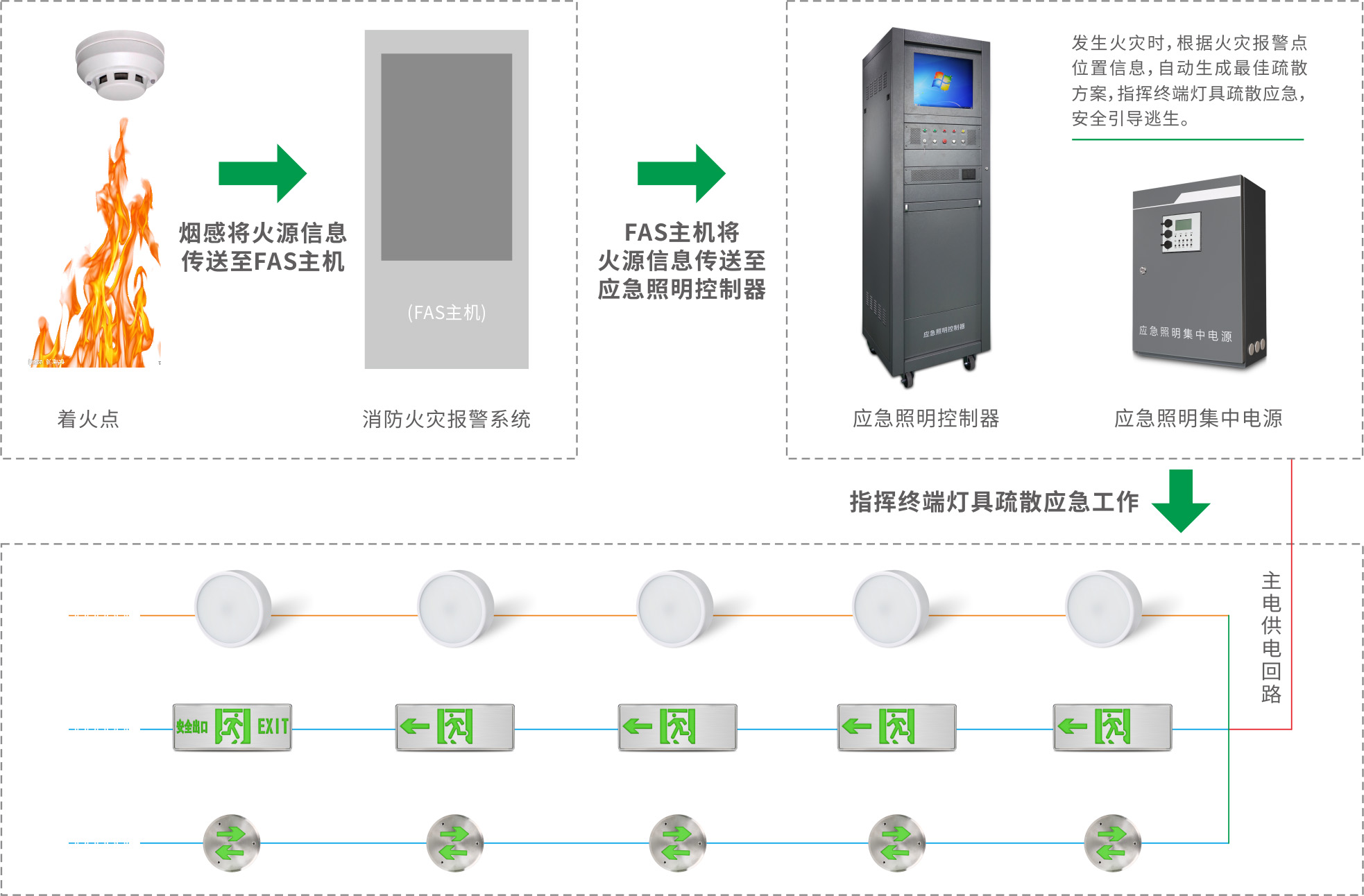 “智能疏散系統(tǒng)”是由智能疏散系統(tǒng)控制主機(jī)、消防應(yīng)急電源、消防應(yīng)急標(biāo)志燈具、消防火災(zāi)報(bào)警主機(jī),火災(zāi)探測(cè)器等多種設(shè)備組成的一套智能消防疏散系統(tǒng)。該系統(tǒng)具有人機(jī)交互界面,可對(duì)應(yīng)急標(biāo)志燈具實(shí)時(shí)巡檢、并與報(bào)警主機(jī)系統(tǒng)聯(lián)動(dòng)、在有火災(zāi)發(fā)生時(shí),根據(jù)起火位置智能選擇最佳逃生路線進(jìn)行疏散指示。
