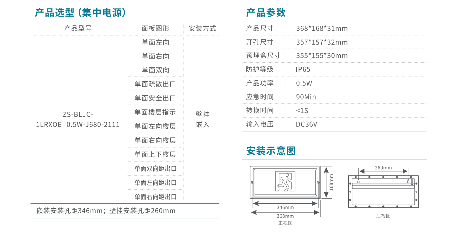 單面左向、單面右向、單面雙向、單面疏散出口、單面安全出口