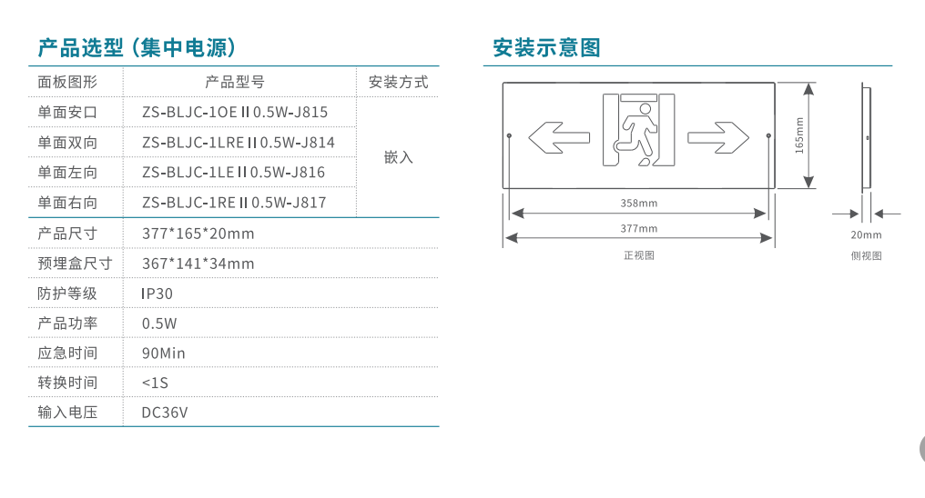 單面右向消防應急標志燈 | ZS-BLJC-1RE II 0.5W-J817 | 嵌入