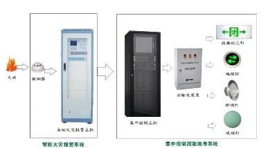 2、智能疏散系統(tǒng)與火災(zāi)警報系統(tǒng)聯(lián)動,由火災(zāi)報警探頭檢測火災(zāi)發(fā)生點及煙霧蔓延方向,并作為逃生系統(tǒng)的輸入信息,由系統(tǒng)對信息進(jìn)行分析處理,最后智能控制消防應(yīng)急標(biāo)志燈和導(dǎo)流燈的指示方向,以及應(yīng)急照明燈的開啟,幫助建筑內(nèi)的人群實時地選擇最佳逃生路線。