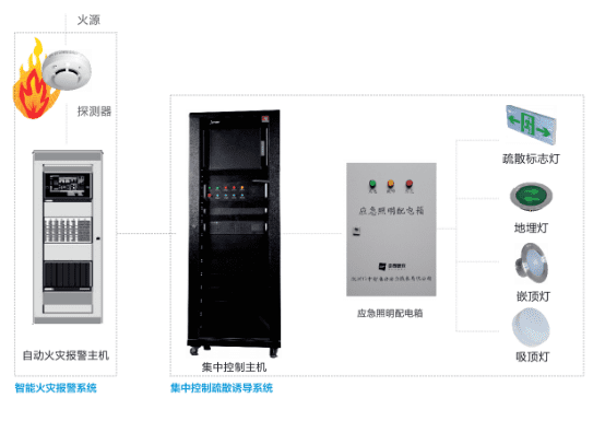 系統(tǒng)主機(jī)與FAS(火災(zāi)自動報警系統(tǒng))主機(jī)聯(lián)動,在火災(zāi)發(fā)生時,根據(jù)FAS探頭探測的火源發(fā)生點及煙霧蔓延方向,與防火卷簾門控制系統(tǒng)進(jìn)行無縫聯(lián)動,智能地為建筑內(nèi)的人群指示出最佳疏散路線,讓被困人員安全、準(zhǔn)確、迅速地逃離火災(zāi)現(xiàn)場。智能終端采用內(nèi)嵌高性能單片機(jī)控制技術(shù),實現(xiàn)對終端及時監(jiān)控及控制操作;控制主機(jī)平時通過總線網(wǎng)絡(luò)實時監(jiān)控各個終端,實時報告終端設(shè)備故障,方便維護(hù);在險情發(fā)生時,自動將信息指令發(fā)布到每個終端,終端收到指令之后自動開始工作,如頻閃、變向、開,滅燈等工作,實時智能的為現(xiàn)場人員指示出最佳,最安全的疏散路線。